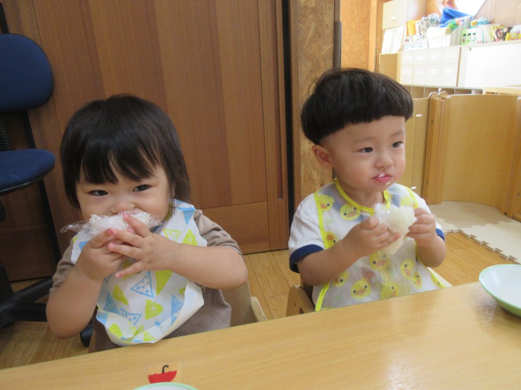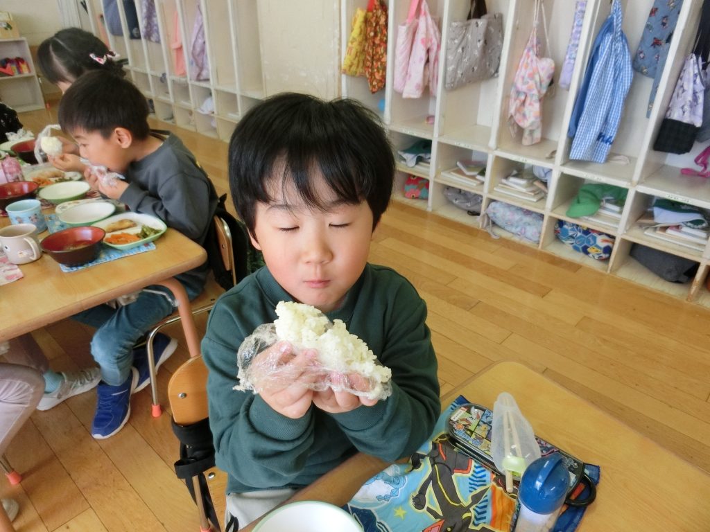 お米が育っていく様子や稲を子どもたちと見てお待ちかねのおにぎり作りです♪