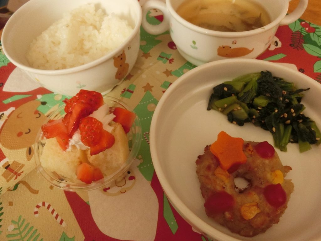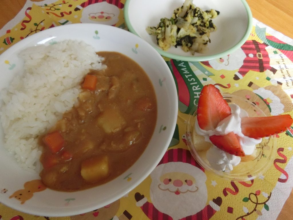 みんながお待ちかねの給食もクリスマスの特別メニューで、デザートにクリスマスケーキが付きました☆