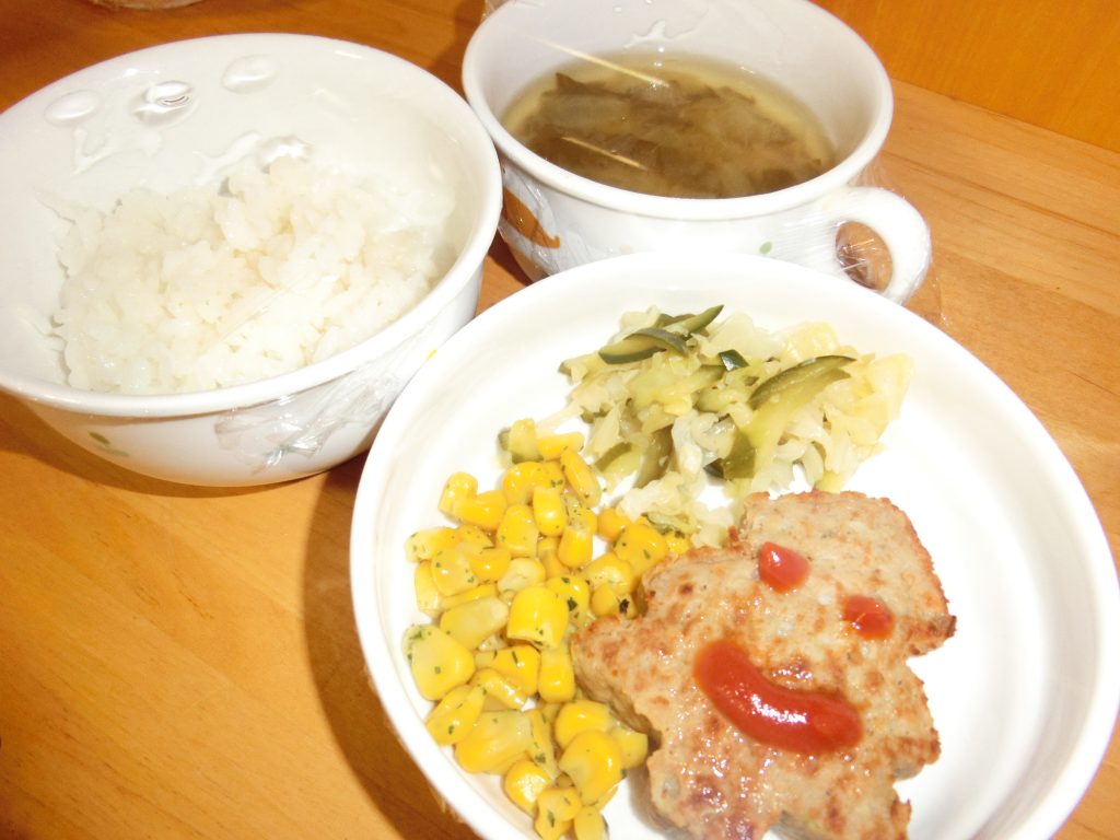 カレーは3歳児もみじ・くるみ組さんで大好きなカレーに「おかわり!」の元気な声も聞こえてきました。乳児さんはリース型のハンバーグで人参の星が光っていましたよ♪