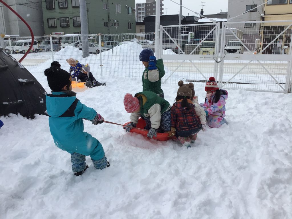 12月は積雪が少なかったのですが2026年になり、たくさん雪が降って園庭では毎日雪遊びを楽しんでいます☆