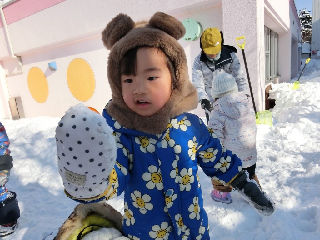 このように雪がたくさん降っても、元気いっぱいに外遊びを楽しんでいる子どもたちです!