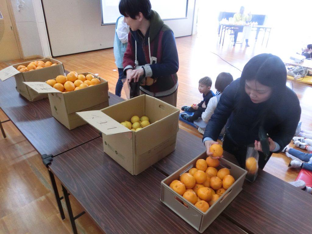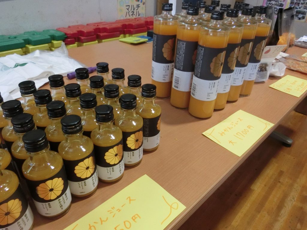 講演会の後はマルシェも行われました。観音山フルーツガーデンさんのみかんの詰め放題や、ジュースなどたくさんの方に購入していただき大盛況でした!