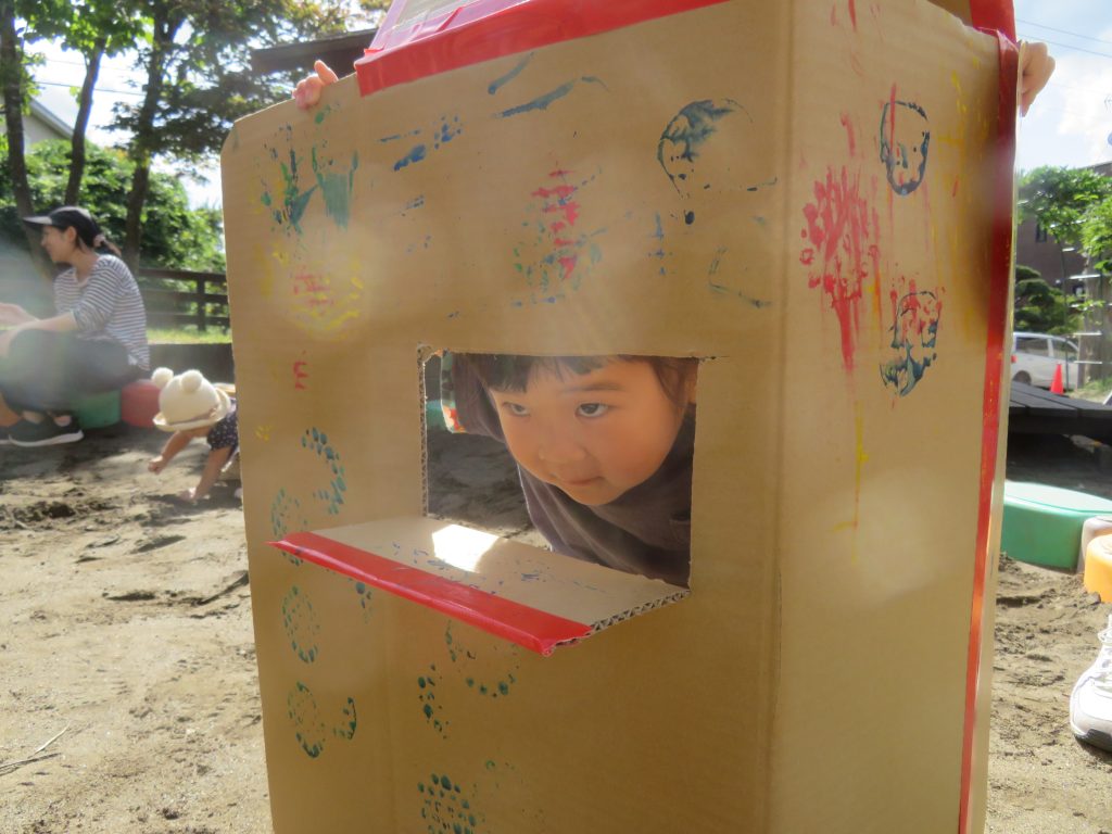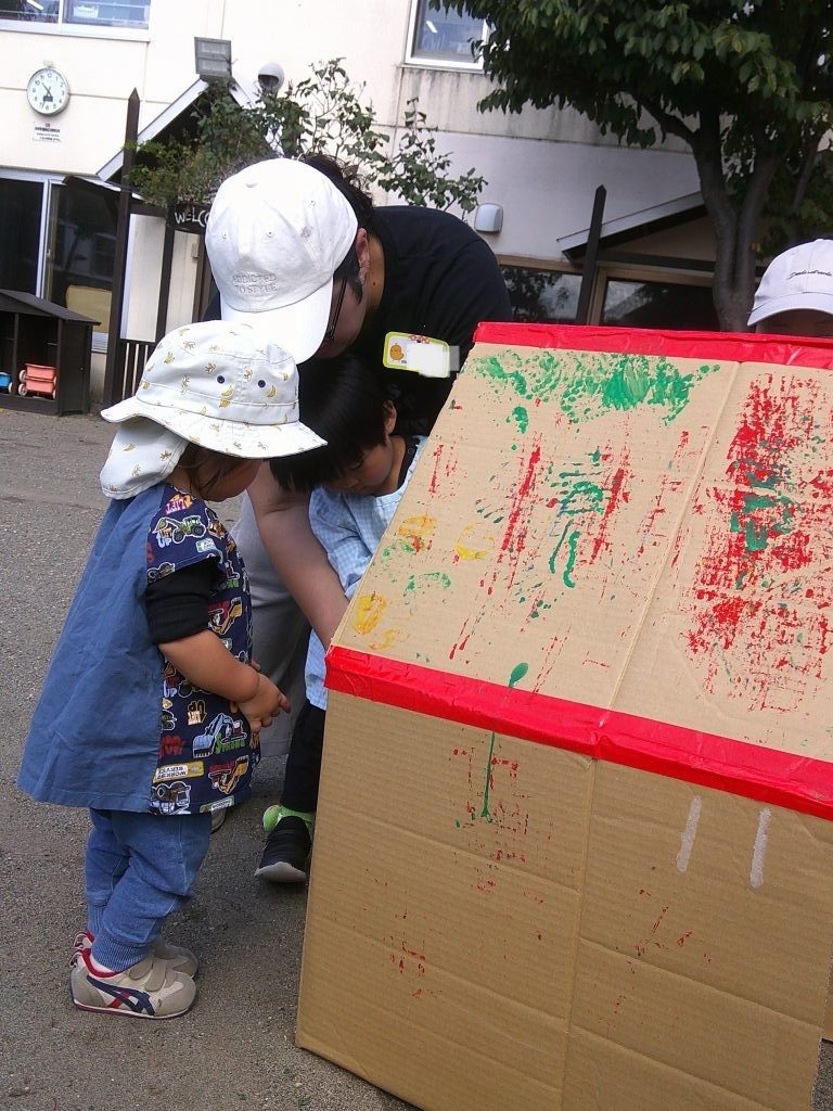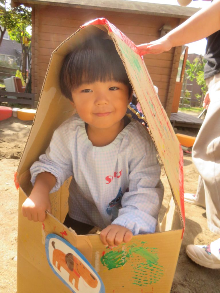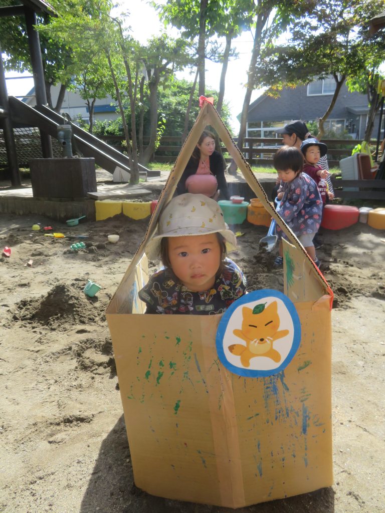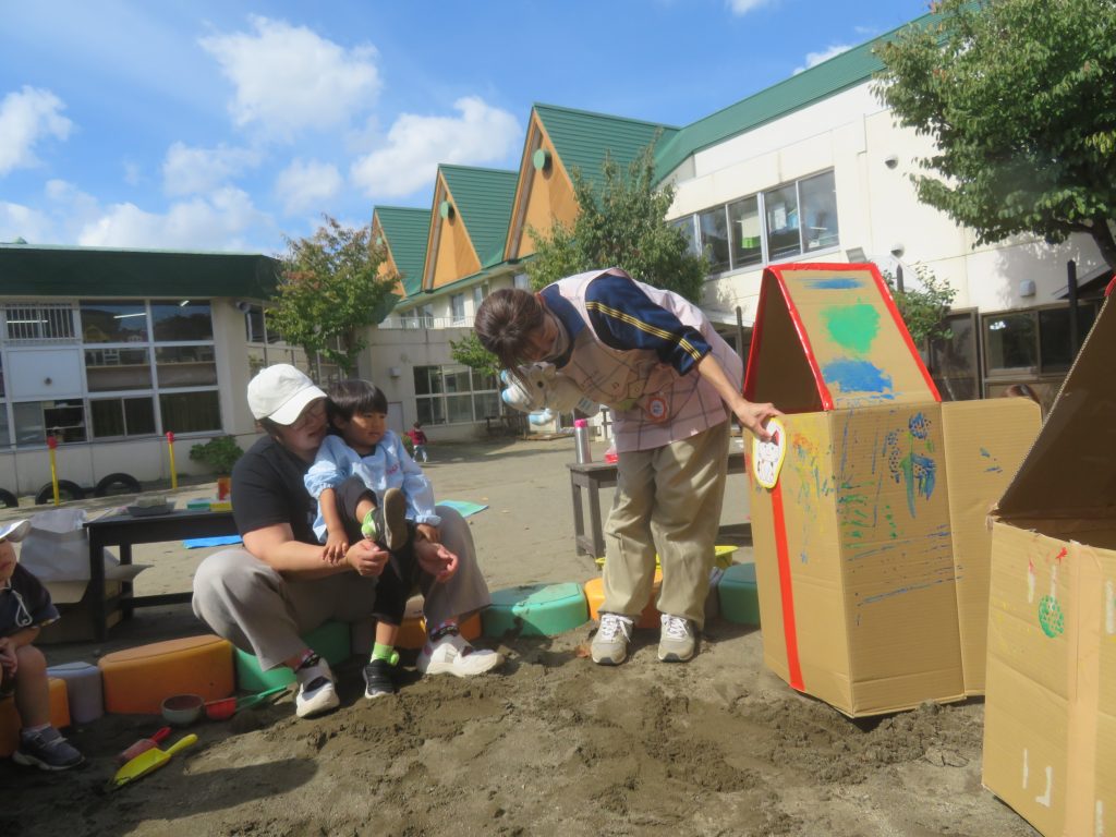 親子でスタンプ遊び、気持の良い秋晴れの中