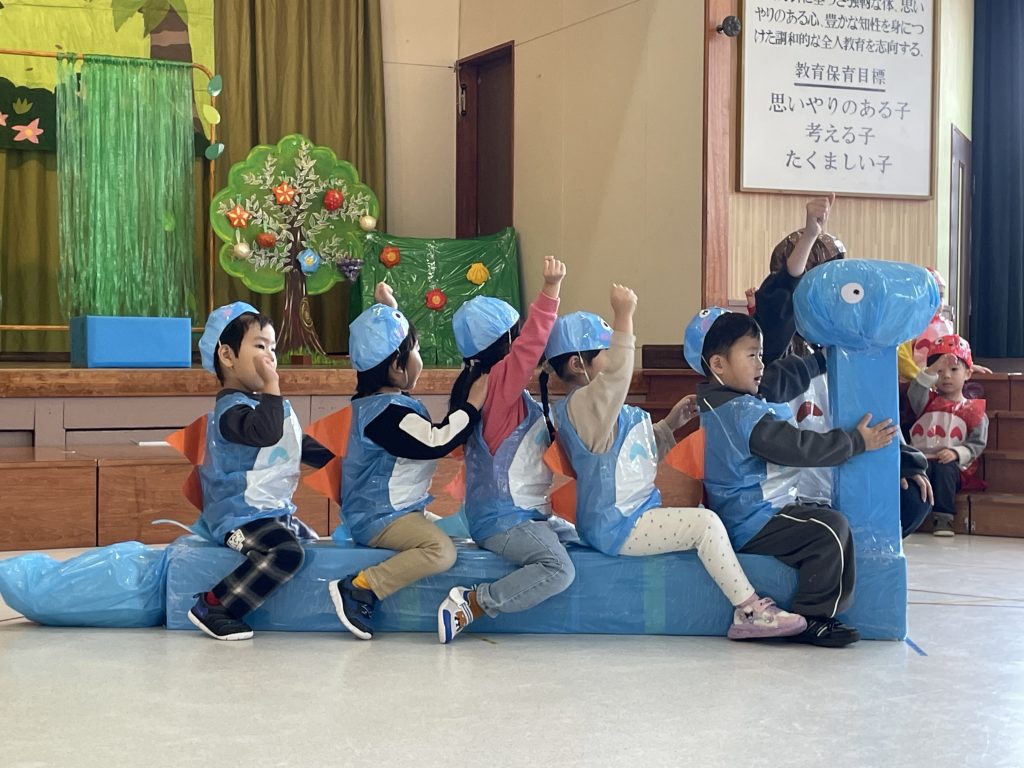 こちらは、ブラキオザウルスに乗った3歳児もみじ組さん♪