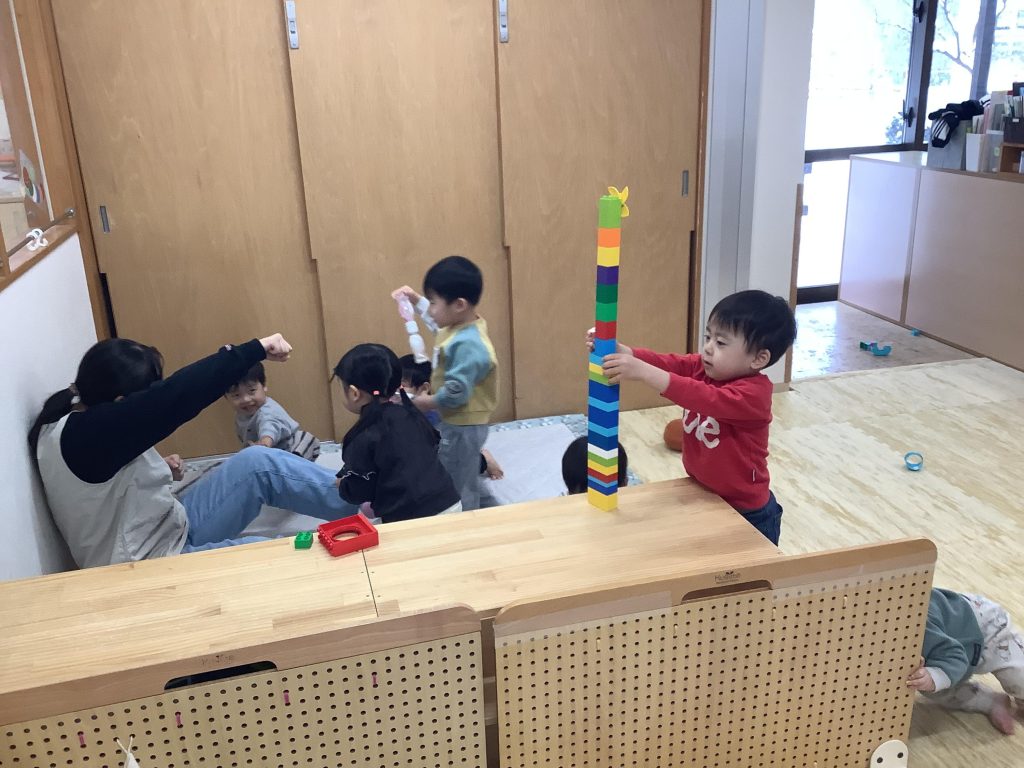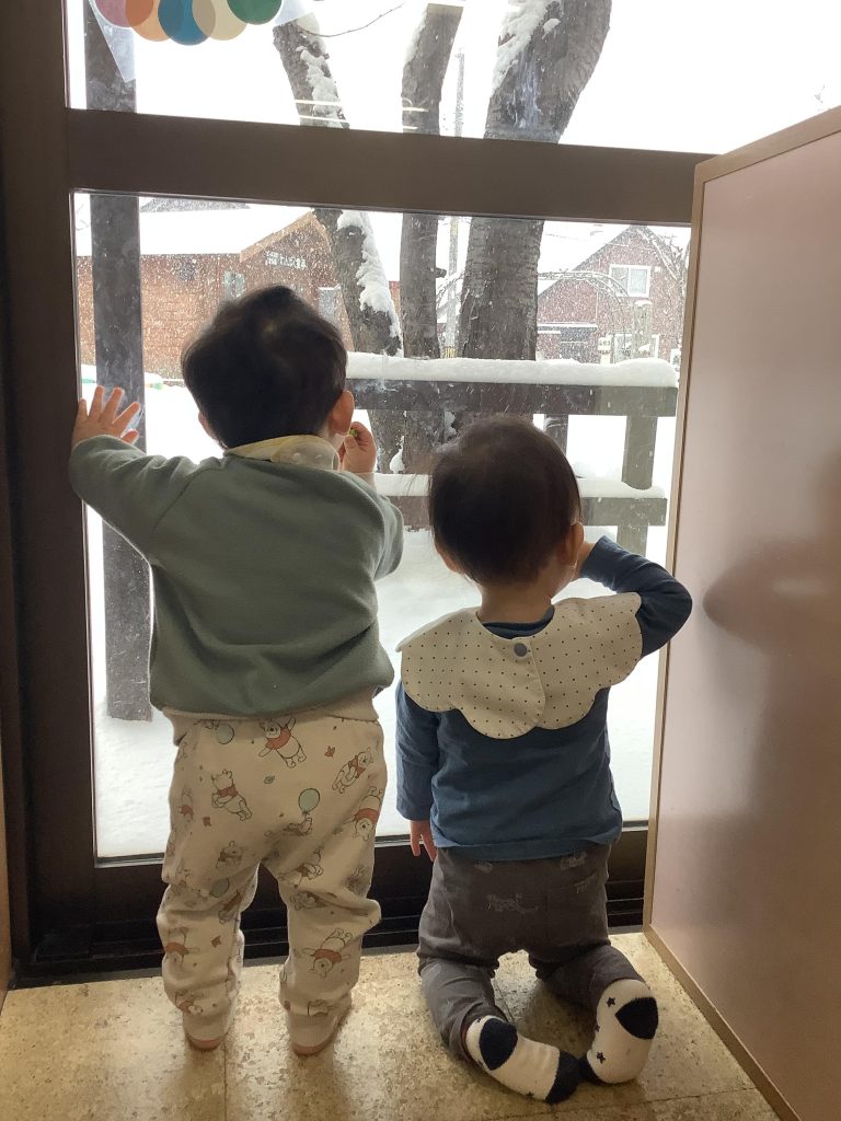0歳児クラスの二人、かわいい後ろ姿ですね♪