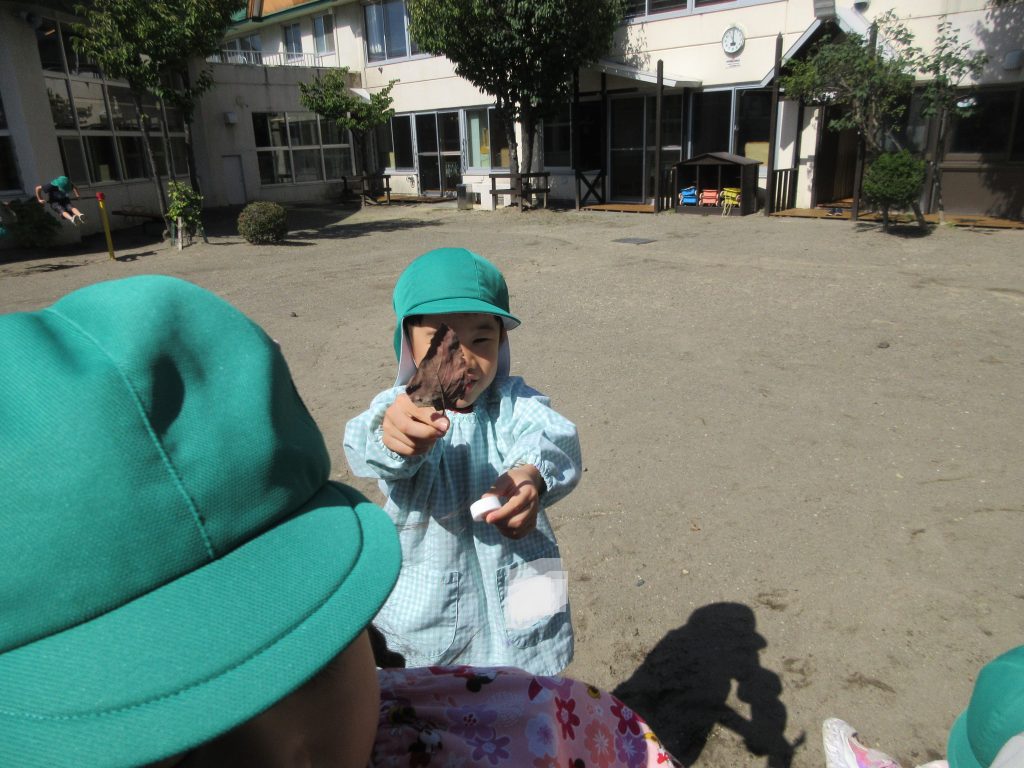 「はっぱみつけたよ~!」と
