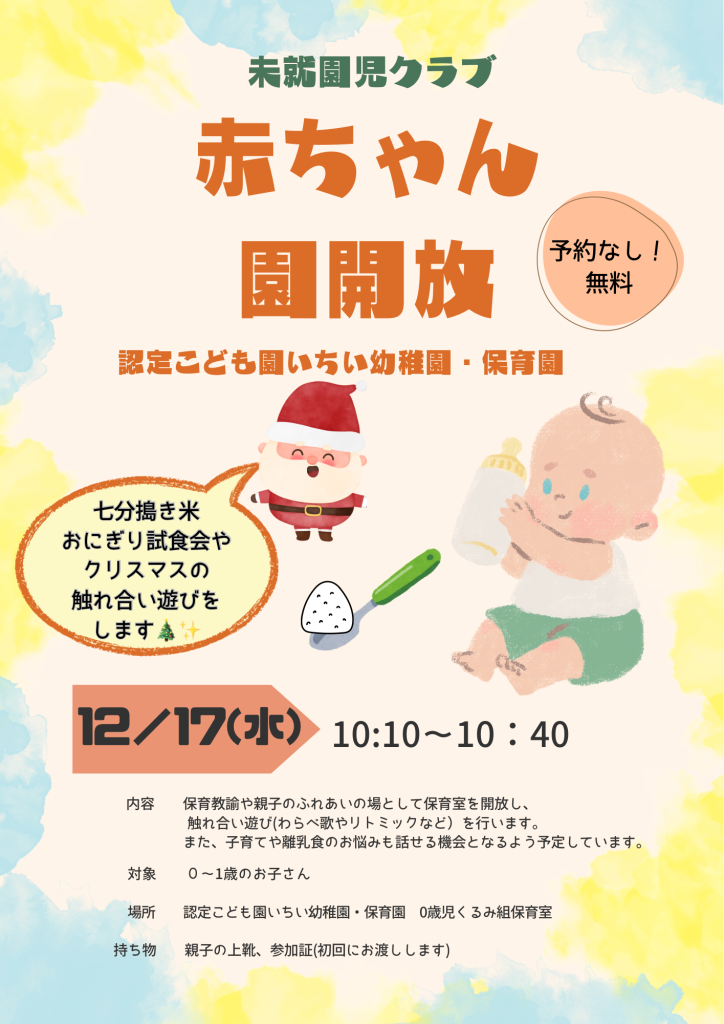 12月17日(水)10:10~10:40は赤ちゃん園開放があります。