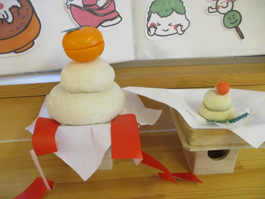みんなでついてできあがったお餅で「鏡餅」を作って飾りました!