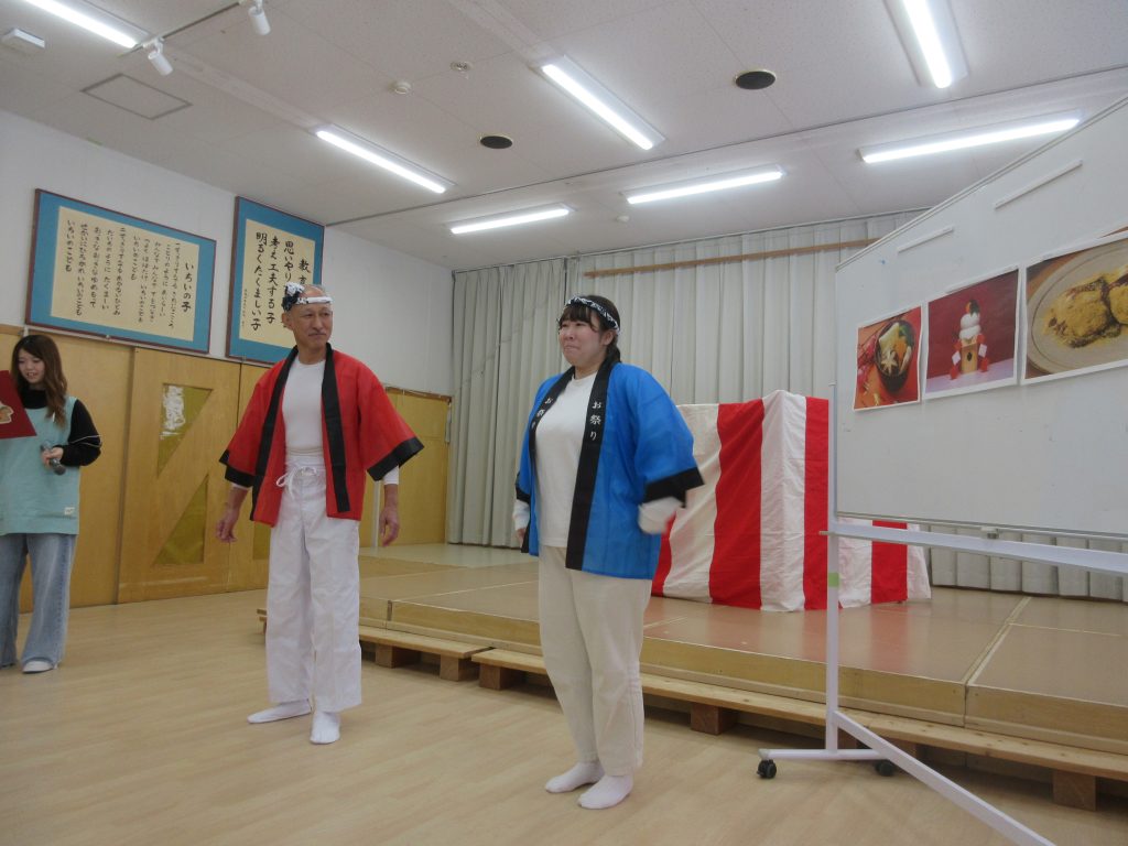 今年も保育教諭扮する“もちつき名人”が新入りの弟子を連れて、菊水いちいにやってきました。お正月や鏡餅の由来について教えてくれたあと、もちのつき方を披露してくれましたよ。