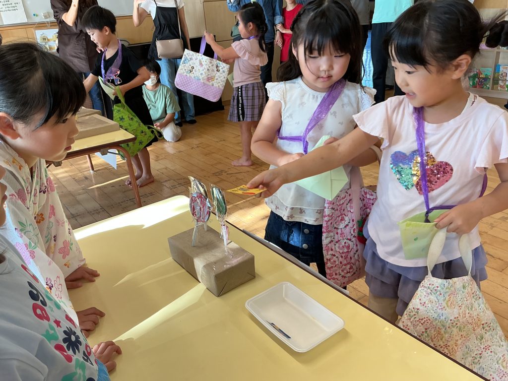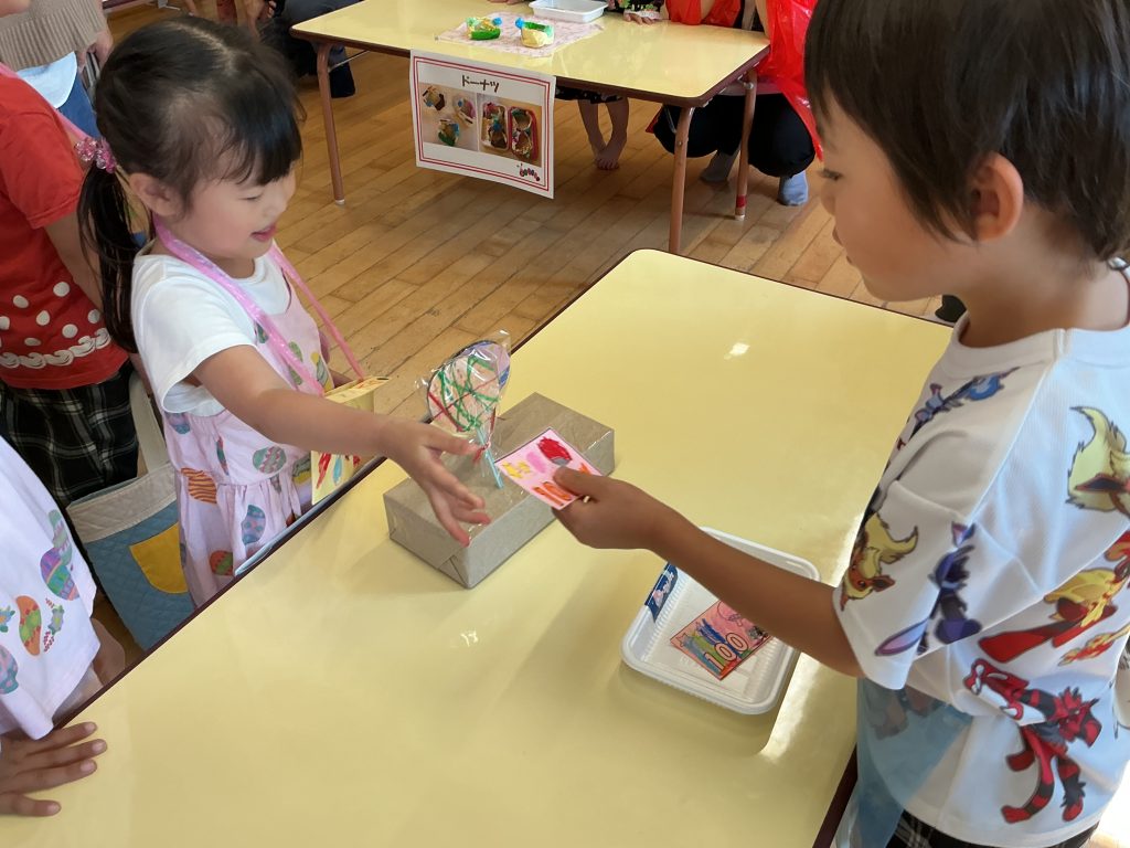クラスの中でお店屋さん役と買い物役を決めて、いよいよ『おまつりごっこ』スタート!!