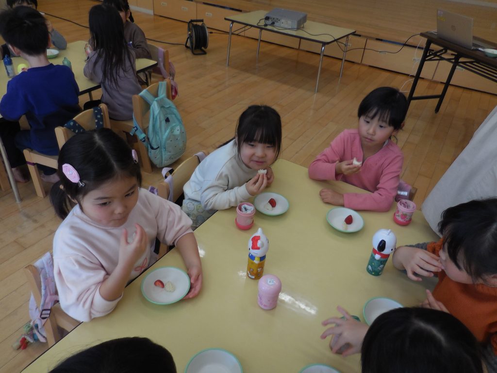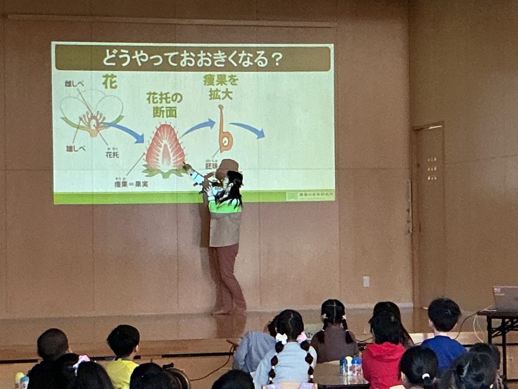 いちごクイズやいちごの花が咲いてできるまでなどのお話をいただき、真剣に聞く姿が見られていました☺