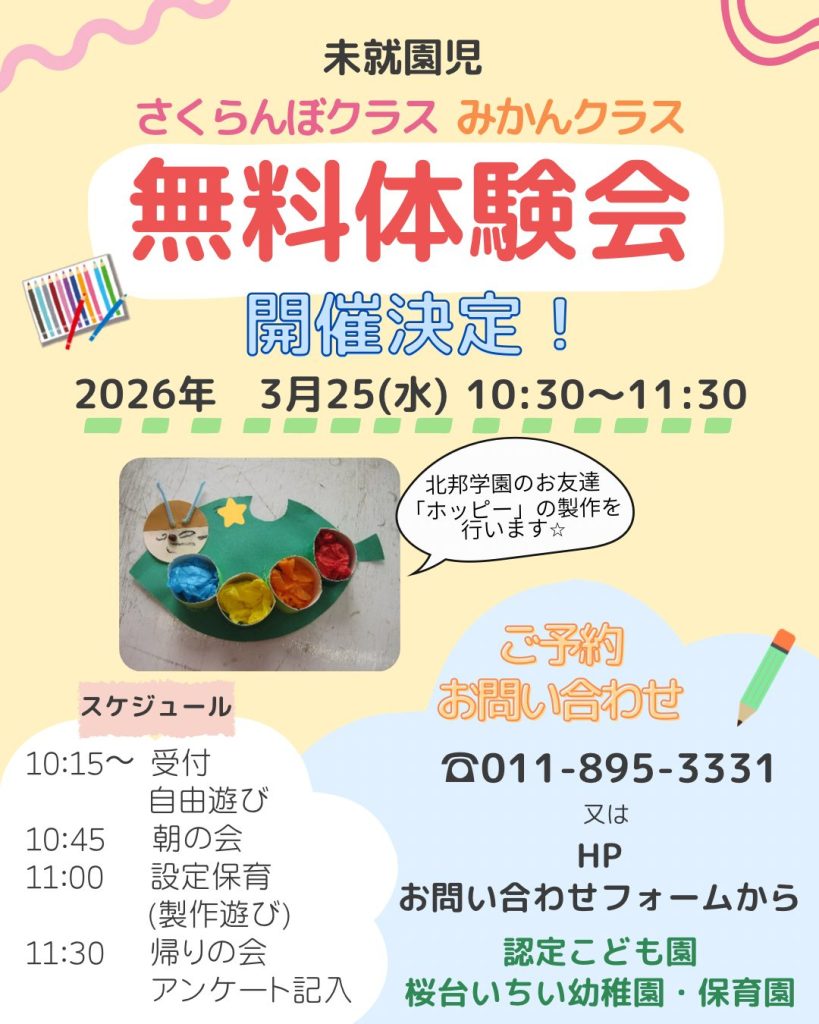 また、2026年3月25日(水)には無料体験も実施!!無料体験できるのはこの一回のみ!